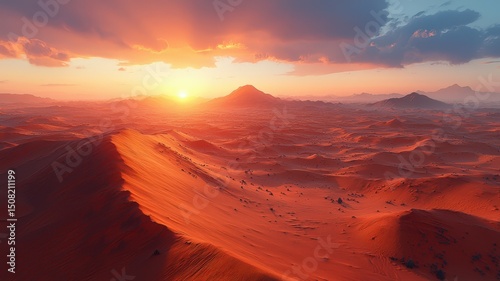 © Yopi, Naklejka premium A Vast Volcanic Plateau at Sunset with Soft Light Casting Over the Expansive Landscape