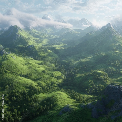 © Sonita, Fototapeta premium A vast wilderness area with rolling hills, dense forests, and untouched nature.