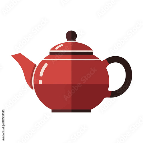 © AI.noevation, Obraz premium A vector 2D illustration of a red teapot on a white background with a black handle and spout