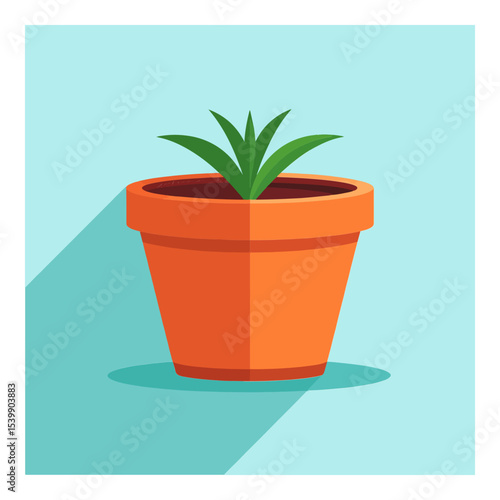 © Nabil, Obraz premium A vector drawing shows a potted green plant with a long shadow set against a blue background