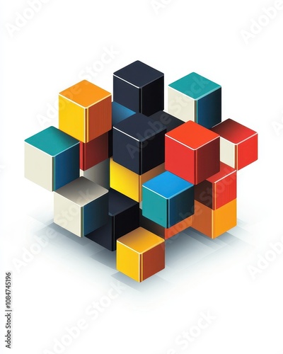 © peppastocker, Obraz premium A vector graphic illustrating uniformity with identically stacked cubes arranged symmetrically, highlighting design precision against a white background