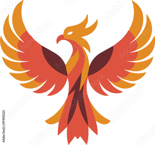 © Chayon Sarker, Obraz premium A vector illustration of a phoenix with open wings in a flat curvy design style