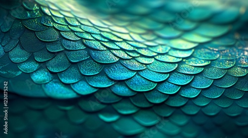 Fototapeta premium A vector illustration of a shimmering snake skin texture with iridescent scales in deep emerald tones.