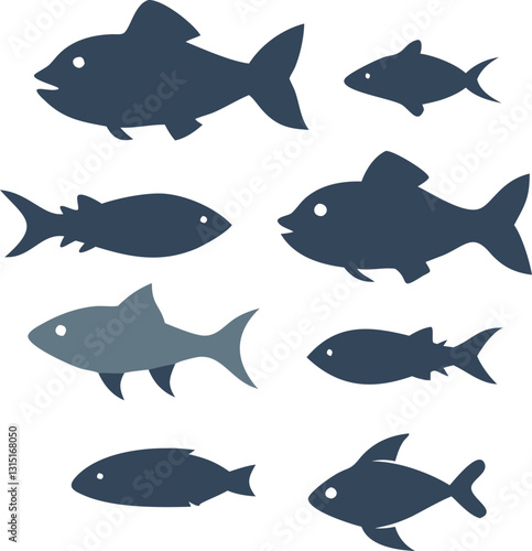 Obraz premium A vector set of marine fish illustrations showcases various aquatic animals swimming in the ocean, perfect for seafood or wildlife designs