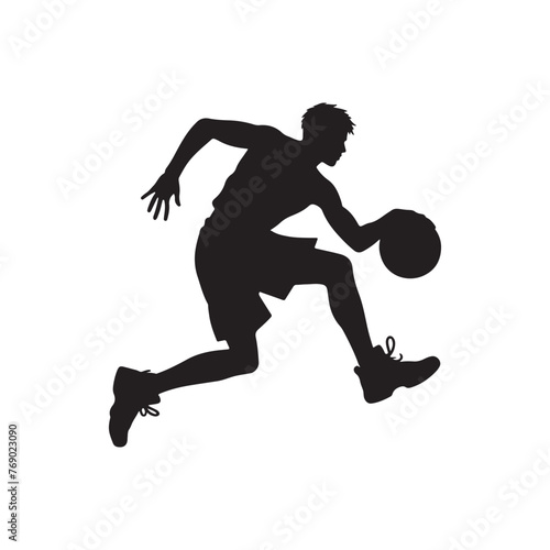 © Story Let, Naklejka premium A vector silhouette of a basketball player playing basketball isolated on a white background