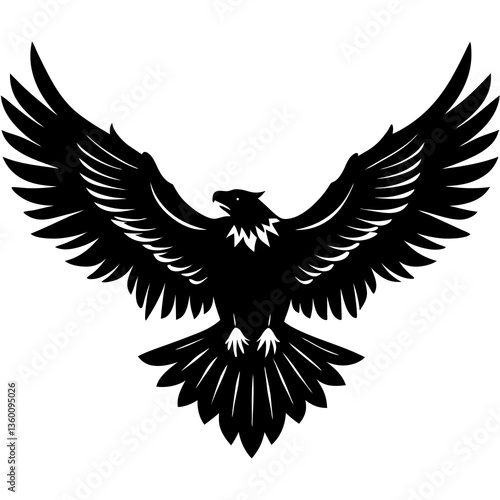 © Jui, Obraz premium A vector silhouette of an eagle soaring with its wings fully spread, centered on a white background