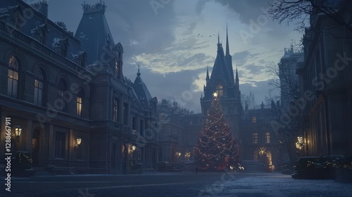 Fototapeta premium A verdant Christmas tree, adorned with twinkling fairy lights and adorned...