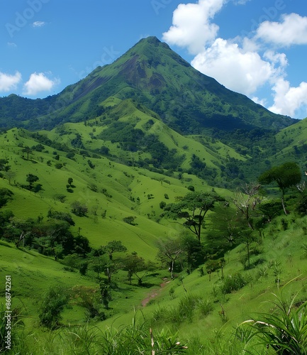 © Adobe Contributor, Fototapeta premium A verdant mountain landscape with a dirt path