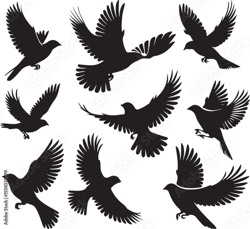 © MD NUR MIA, Fototapeta premium A versatile black silhouette vector set featuring flying eagle and bird wing illustrations perfect for nature or tattoo designs.