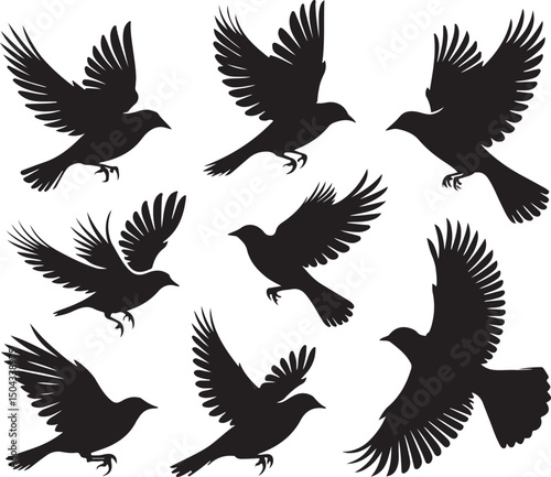 © MD NUR MIA, Fototapeta premium A versatile black silhouette vector set featuring flying eagle and bird wing illustrations perfect for nature or tattoo designs.