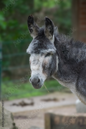 Fototapeta premium A vertical closeup shot of a grey donkey