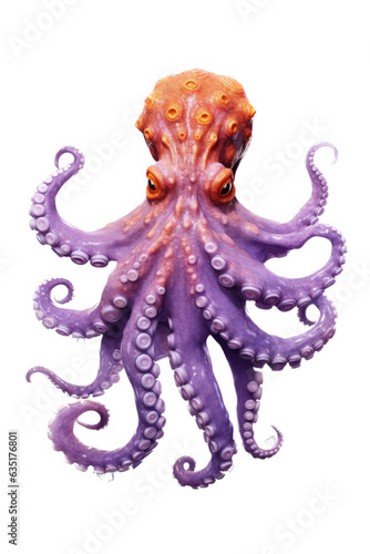 © Purple Penguin GFX, Fototapeta premium a vertical layout of an Octopus, purple and orange colored in a Nature-themed, photorealistic illustration in a PNG, cutout, and isolated. generative AI
