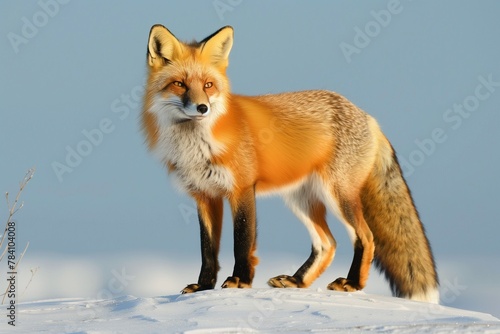 © Wirestock, Fototapeta premium a very cute and pretty red fox standing on top of some snow