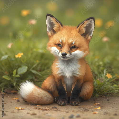 © patypixie, Naklejka premium A very cute and small red fox vulpes