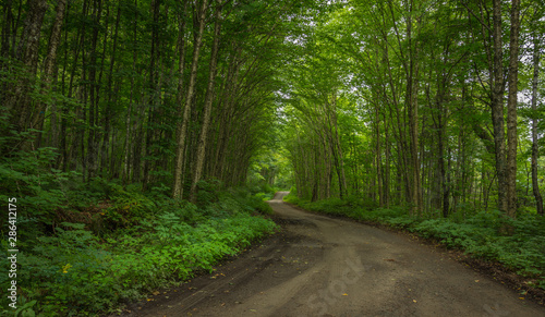 Fototapeta premium A very green forest road in Parc de la Jacques Cartier