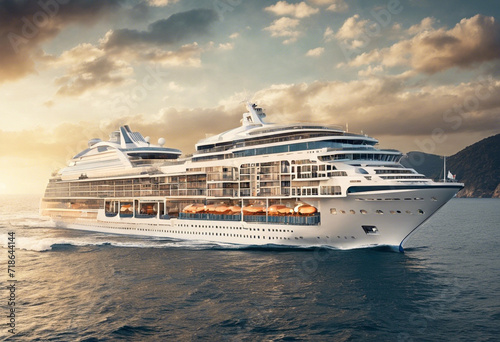 Obraz premium a very luxurious cruise ship is sailing on the sea