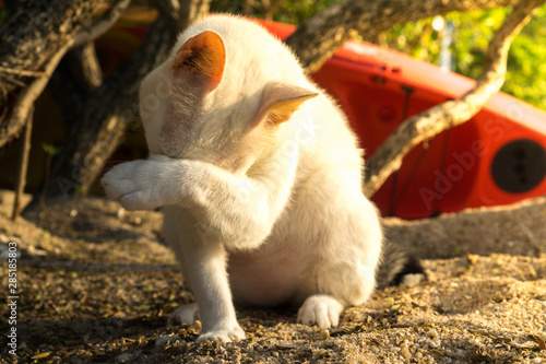© Victor, Fototapeta premium A very shy cat at Koh Tao Island, Thailand