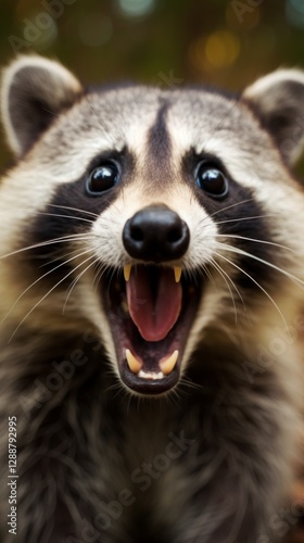 Fototapeta premium A very surprised raccoon with its eyes and mouth wide open
