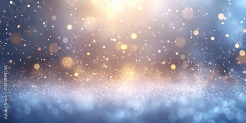 Obraz premium A vibrant abstract background featuring a blend of defocused lights and sparkling particles. the image presents a dreamy, festive ambiance with bokeh effects in warm golden and cool blue tones