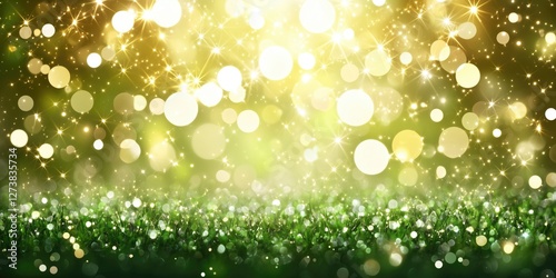 © LoLArt, Obraz premium A vibrant abstract background featuring shimmering green lights and sparkling bokeh effects, creating a magical atmosphere.