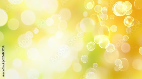 Fototapeta premium A vibrant abstract background featuring soft yellow and green bokeh bubbles,...