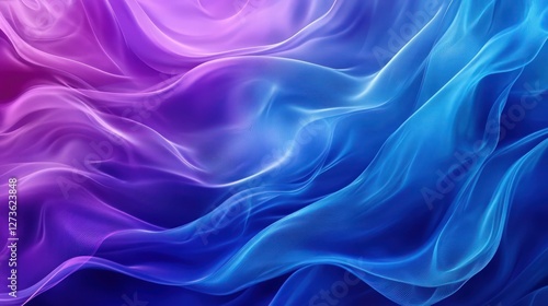 © Bushra, Fototapeta premium A vibrant abstract background with flowing, dynamic waves in shades of blue and purple. The design appears animated, with soft motion effects creating a mesmerizing gradient ripple pattern.