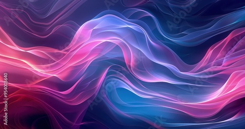 Fototapeta premium A vibrant abstract composition featuring flowing waves of pink and blue hues,...
