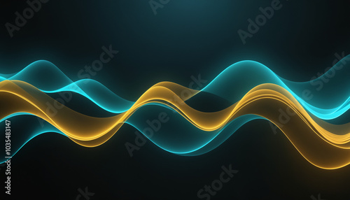 © Boris, Obraz premium A vibrant abstract composition featuring glowing turquoise and gold waves, ideal for modern design projects, technology themes, and artistic backgrounds.