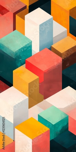 Obraz premium A vibrant abstract design featuring colorful geometric blocks arranged in a...