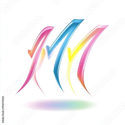 Fototapeta premium A vibrant, abstract design featuring colorful stylized 'M' letters in pink, blue, and yellow on a white background.
