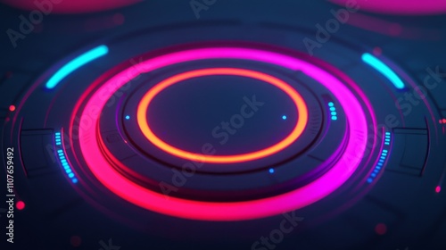 © Phatharaporn, Obraz premium A vibrant, abstract design featuring concentric circles with glowing neon colors, creating a futuristic, tech-inspired aesthetic.