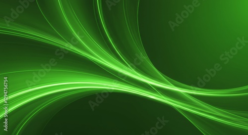 © Alper AI, Obraz premium A vibrant, abstract digital artwork featuring a dynamic swirling pattern of light and shadow in shades of green, with smooth curved shapes creating depth and movement.