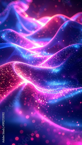 Obraz premium A vibrant, abstract digital artwork featuring glowing neon waves
