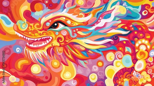 Obraz premium A vibrant, abstract dragon illustration filled with swirling colors and...