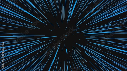 © Jahanara Stock, Obraz premium A vibrant abstract image of blue lines radiating from a central point on a dark background
