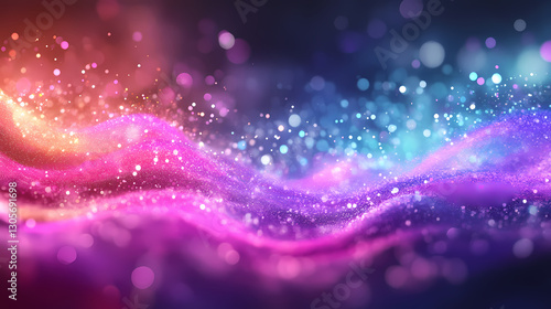 Fototapeta premium A vibrant abstract image showcasing colorful waves of light in purple, blue, and pink, creating a dynamic, fluid visual effect. Enchanted - Forest. Illustration