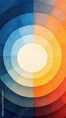 © CoreVisuals, Obraz premium A vibrant, abstract image showcasing concentric circles in varying shades of blue, yellow, and orange, creating a dynamic visual effect.