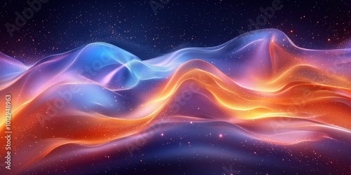 Obraz premium A vibrant abstract landscape with flowing waves of color and light.