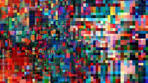 Fototapeta premium A vibrant, abstract mosaic of colorful pixels creating a dynamic visual...