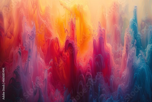 © Multiverse, Obraz premium A vibrant, abstract painting of a cityscape at sunset, with bold strokes of color and a sense of movement