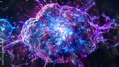 © Adi, Obraz premium A vibrant, abstract representation of a neural network or cellular structure.