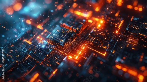 Fototapeta premium A vibrant, abstract representation of digital circuitry and technology.