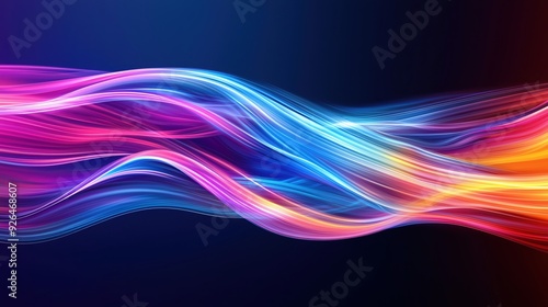 Naklejka premium A vibrant abstract swirl of colorful light waves in pink, blue, and orange against a dark background, creating a sense of motion.