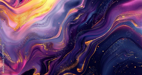Obraz premium A vibrant abstract swirl of colors, blending purple, pink, and gold, creating...