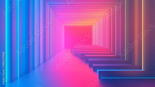 Obraz premium A vibrant, abstract tunnel featuring neon lights in blue and pink hues,...
