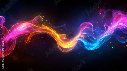 Fototapeta premium A vibrant abstract wave of colorful light flowing across a dark background with small light particles