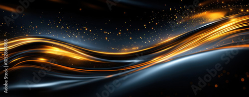 Obraz premium A vibrant, abstract wave of golden and silver light flowing across a dark...