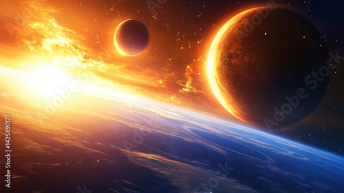 Fototapeta premium A vibrant and beautiful cosmic scene with planets and light