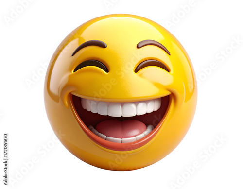 © Wawan, Fototapeta premium A vibrant and cheerful smiling emoji with bright eyes and a wide grin, radiating happiness and joy.