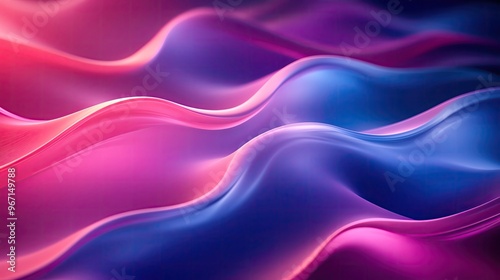 © UnderTheSun, Obraz premium A vibrant and colorful abstract wave pattern with smooth curves, blending shades of pink and blue for a dynamic visual effect.